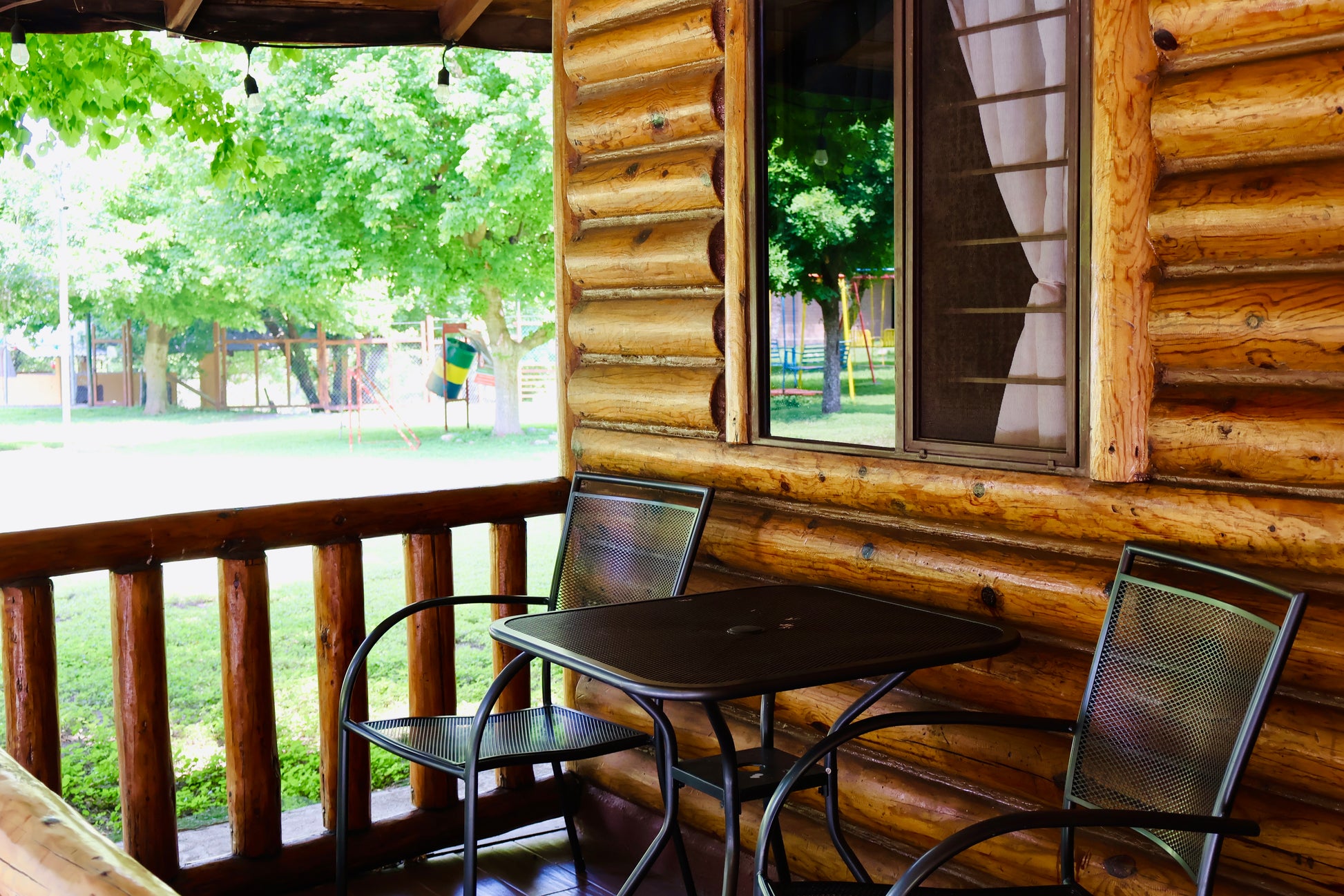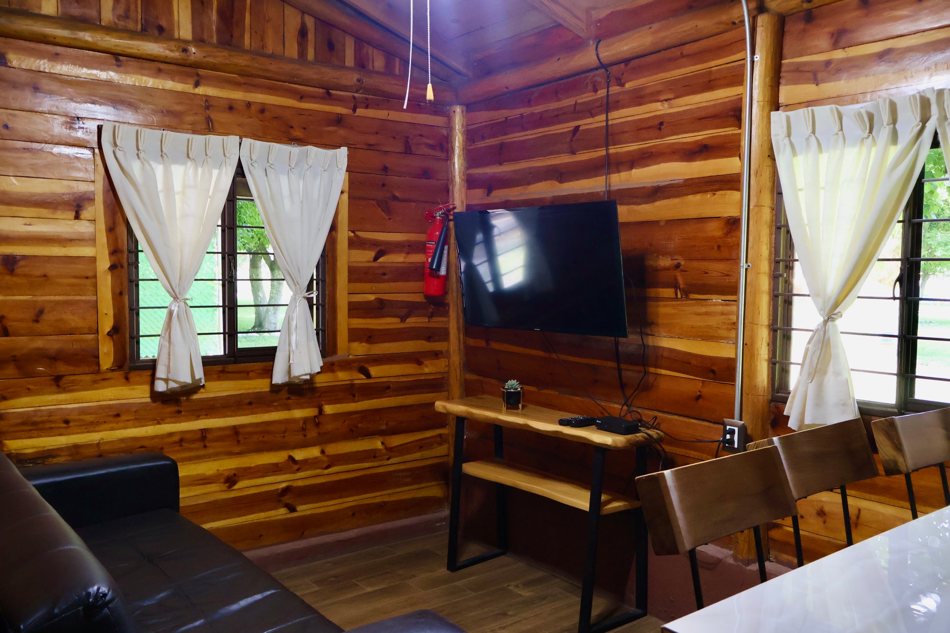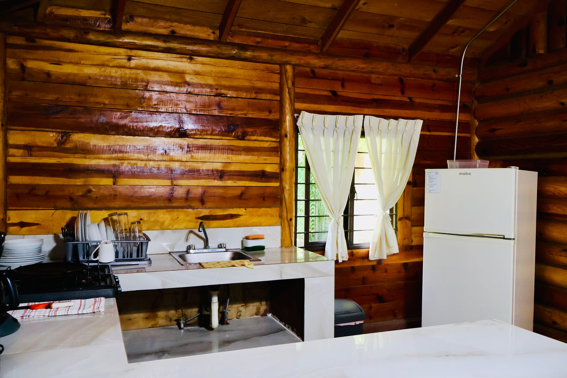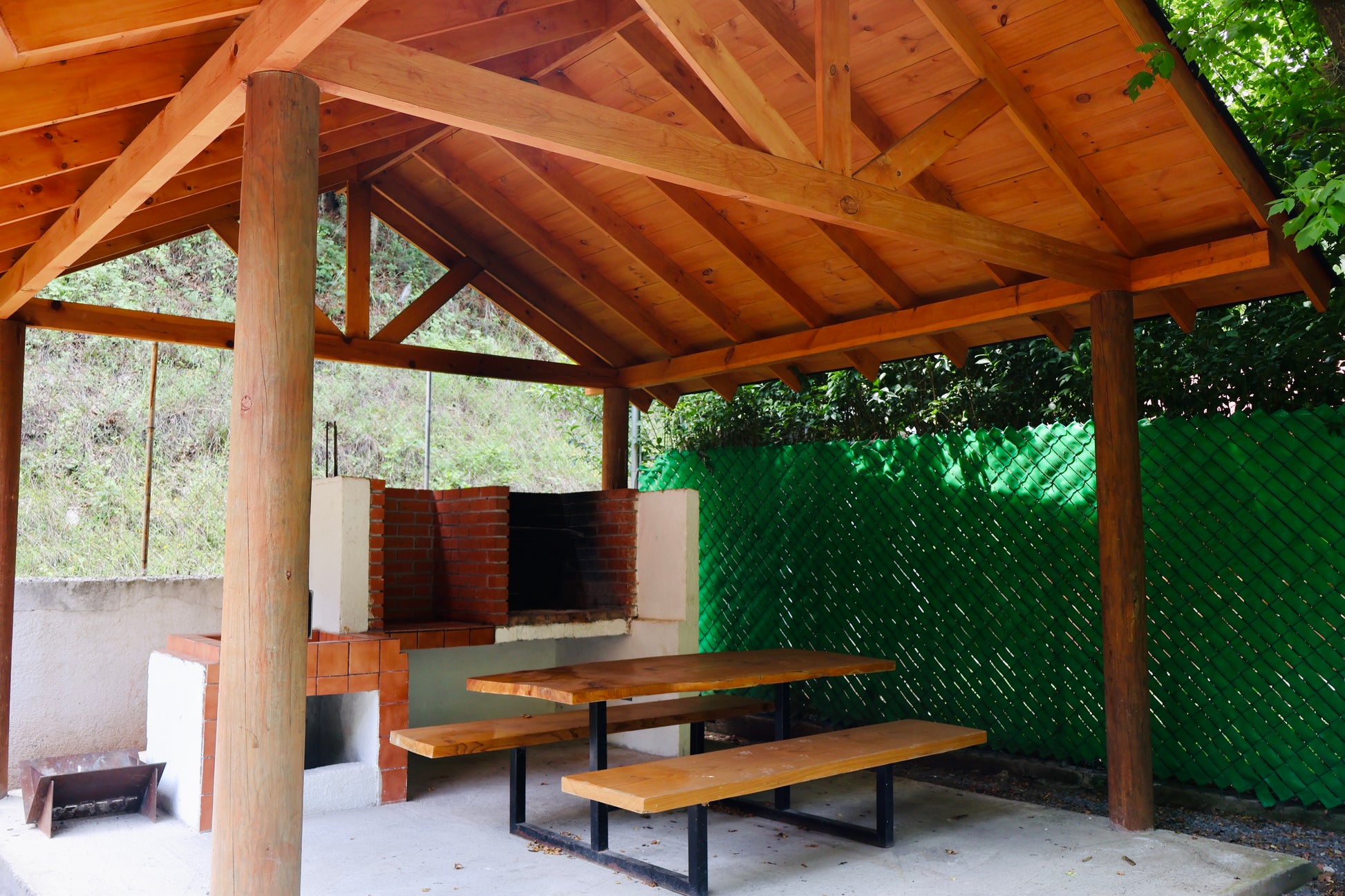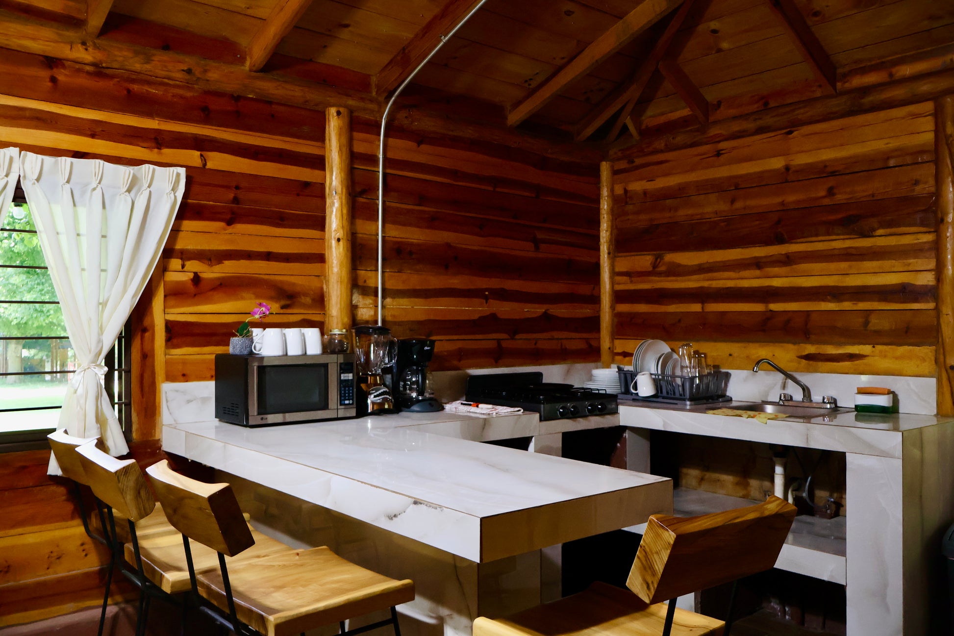 - Área tipo palapa exclusiva para la cabaña, la cual incluye asador, mesa, sillas, luz, fregadero y fogatero.