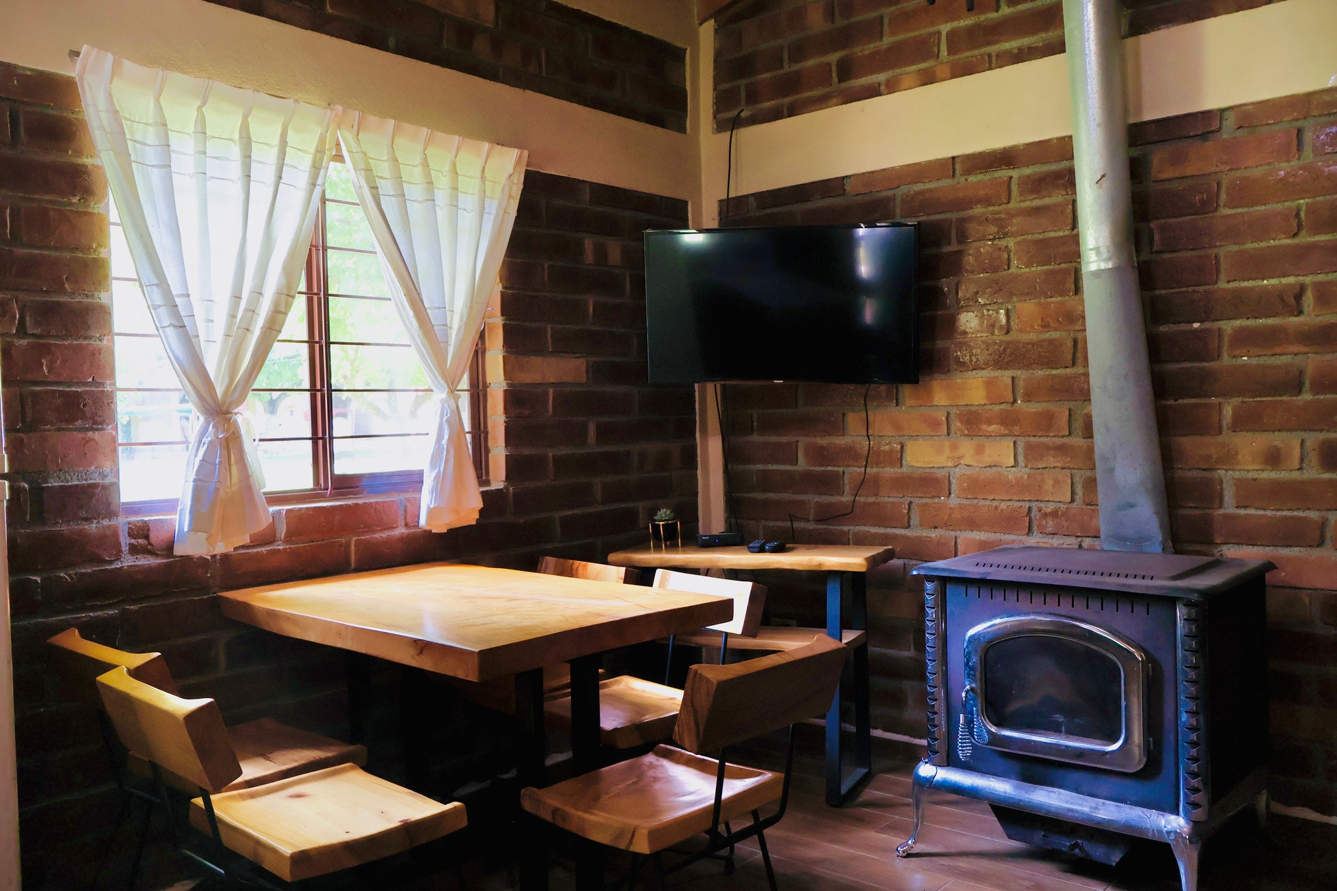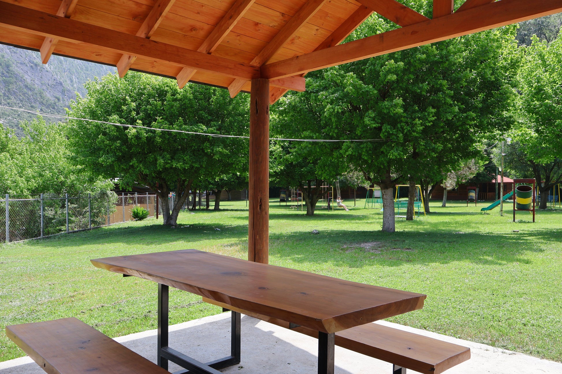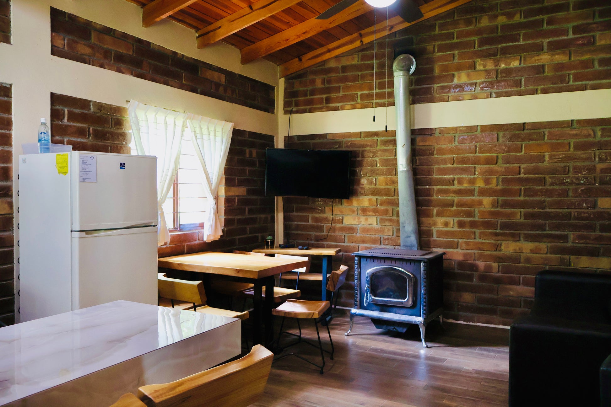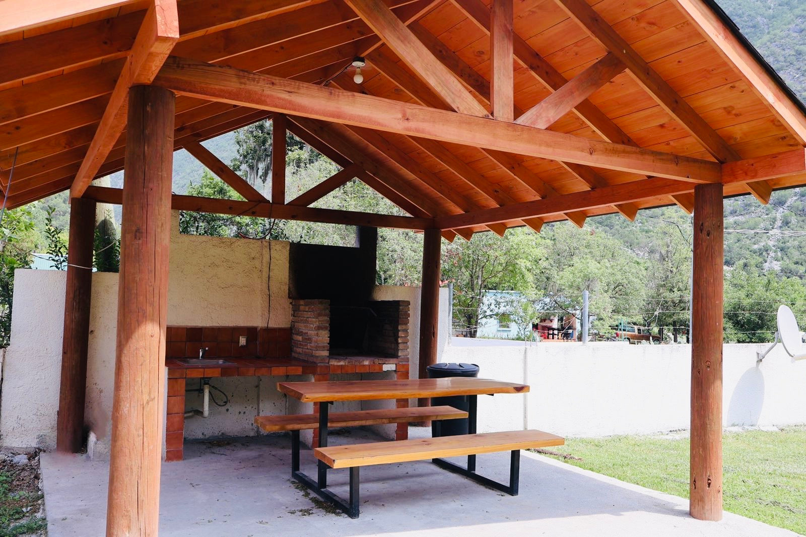 - Área tipo palapa exclusiva para la cabaña, la cual incluye asador, mesa, sillas, luz, fregadero y fogatero.