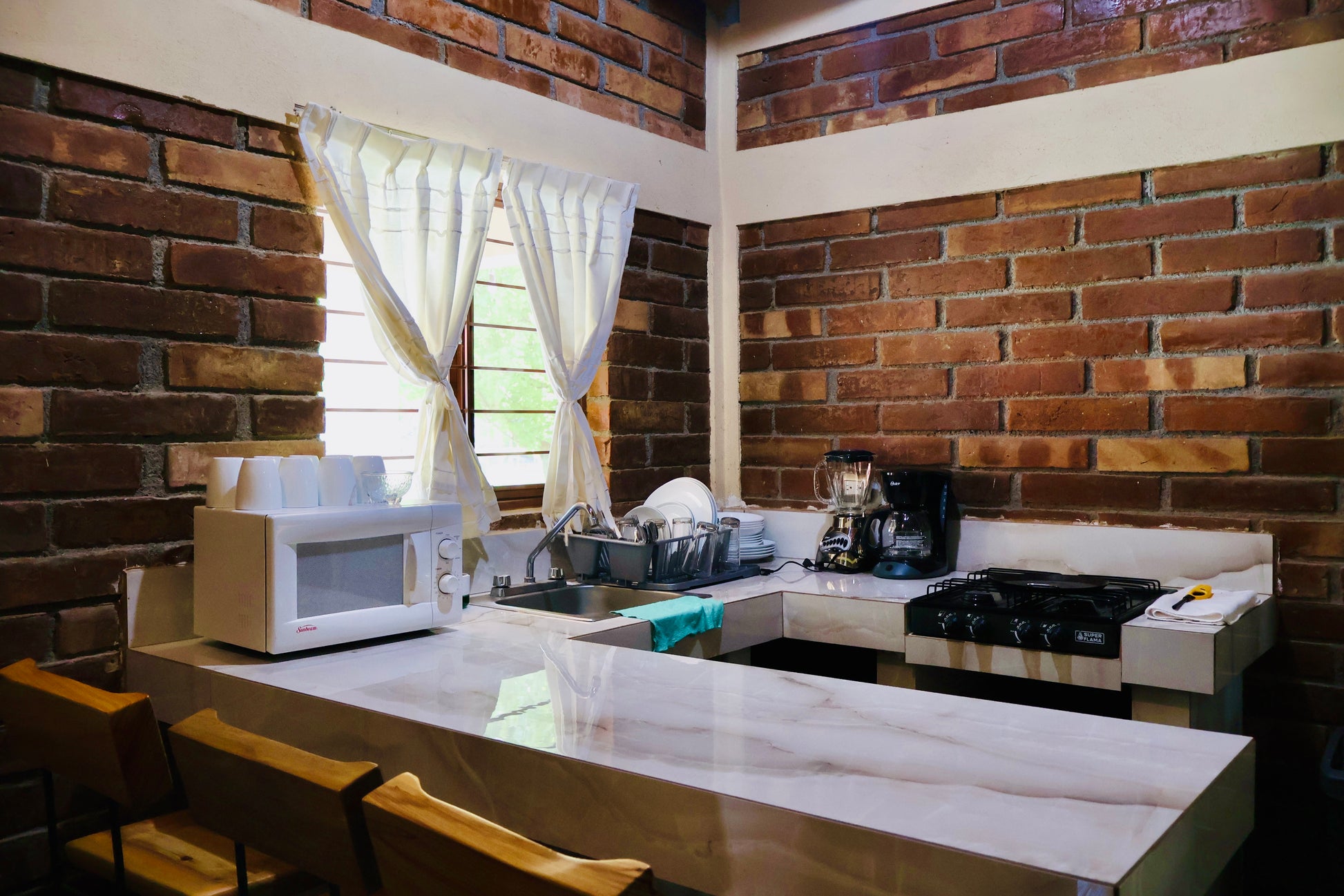 - Cocina equipada con: refrigerador, microondas, estufa, utensilios de cocina, cafetera y licuadora.